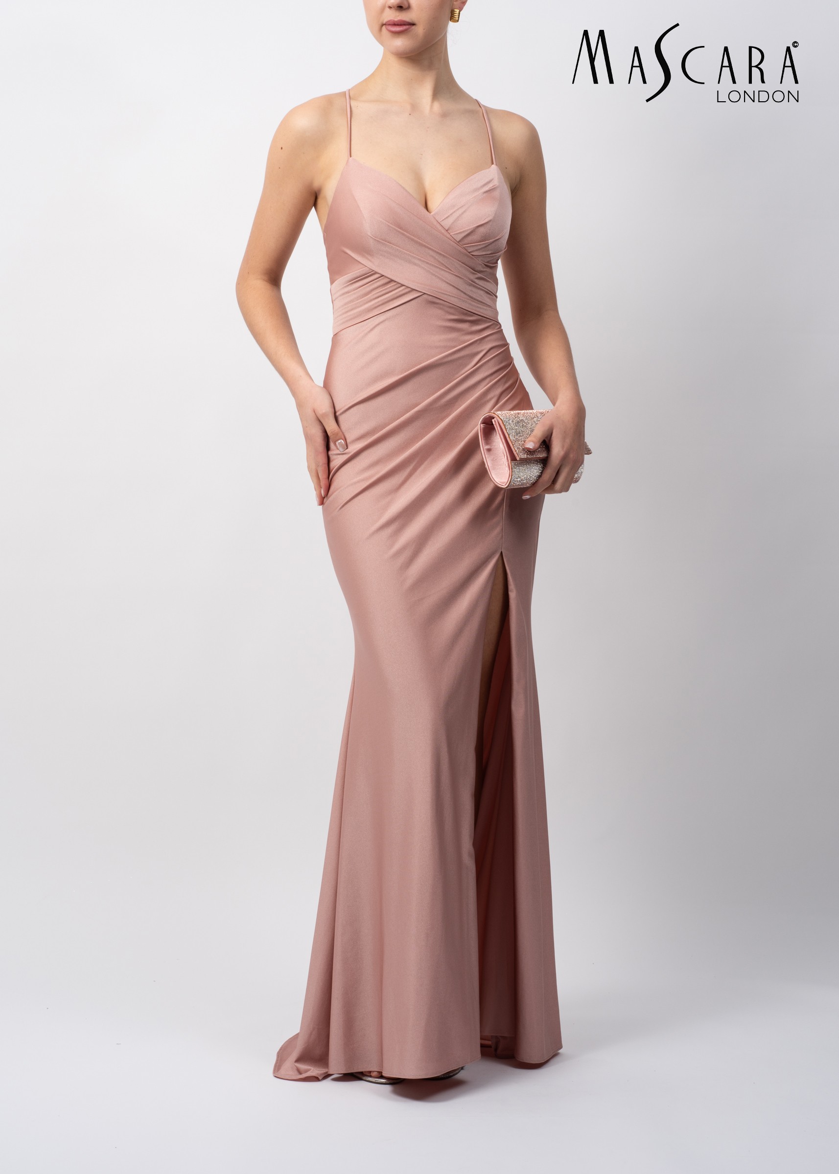 Ideal for proms, formal events, evening receptions, and special occasions, the MC195113 Rose Cross-Pleat Jersey Dress is a versatile choice for those who appreciate simplicity, elegance, and flattering design. Finished with Mascara’s signature attention to fit and quality, this gown offers a polished look with effortless sophistication.